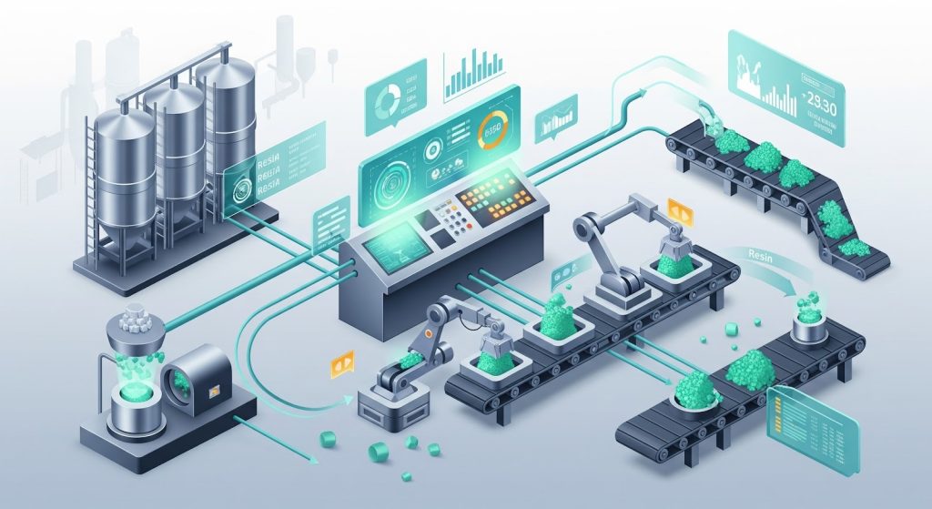 A verdadeira eficiência começa muito antes da injeção ou extrusão: ela nasce na gestão inteligente do insumo. Segundo dados recentes da Confederação Nacional da Indústria (CNI), a digitalização e automação de processos industriais podem aumentar a eficiência produtiva em mais de 20%, um diferencial competitivo crucial para os próximos anos.